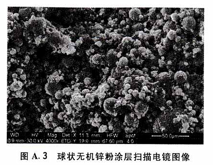 圖A.3  球狀無機(jī)鋅粉涂層掃描電鏡圖像