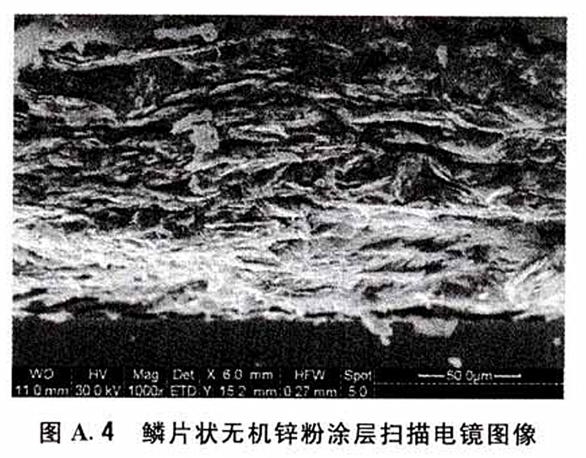 圖A.4  鱗片狀無機(jī)鋅粉涂層掃描電鏡圖像