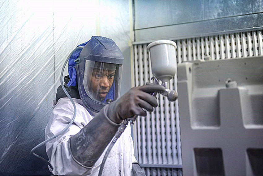 4、噴涂面漆時,如果光澤太高,須用120目砂紙打磨均勻或在前道漆表干后,實干前進行施工。